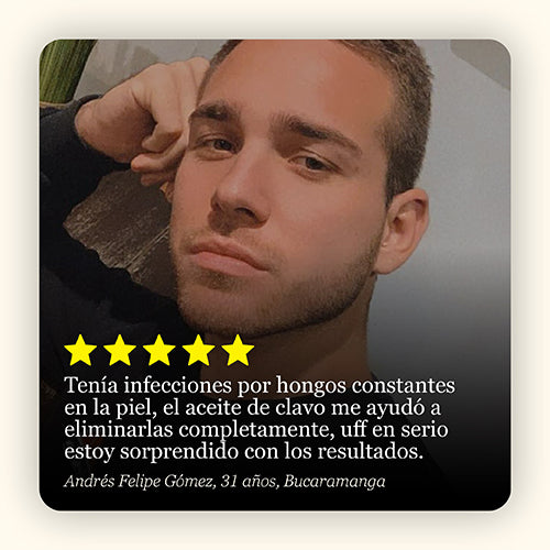Uso tópico: Para afecciones de piel, aplica directamente sobre la zona afectada 2-3 veces al día. El aceite de clavo es especialmente efectivo para esto.