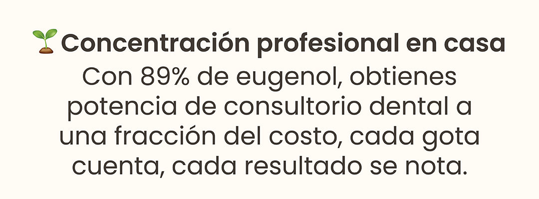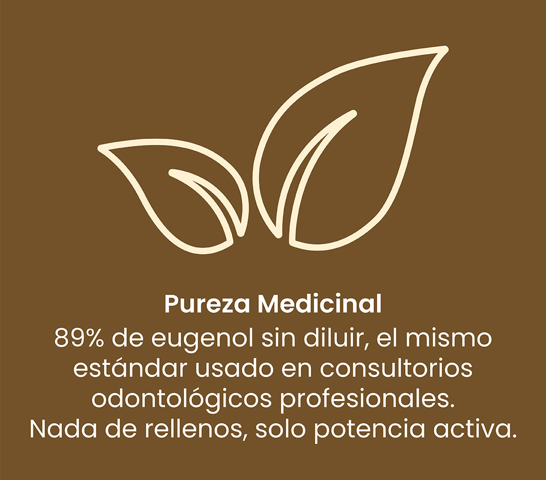 Tenía una muela sensible que me molestaba cada vez que comía. Apliqué una gota diluida y el alivio fue casi instantáneo. Llevo usándolo dos semanas y la sensibilidad desapareció por completo. Debí probarlo antes.
